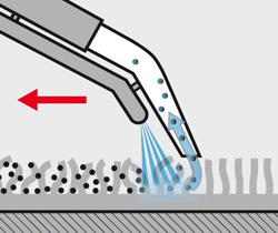 - Проводится обработка экстрактором — с его помощью грязь вымывается из ворса под давлением.
